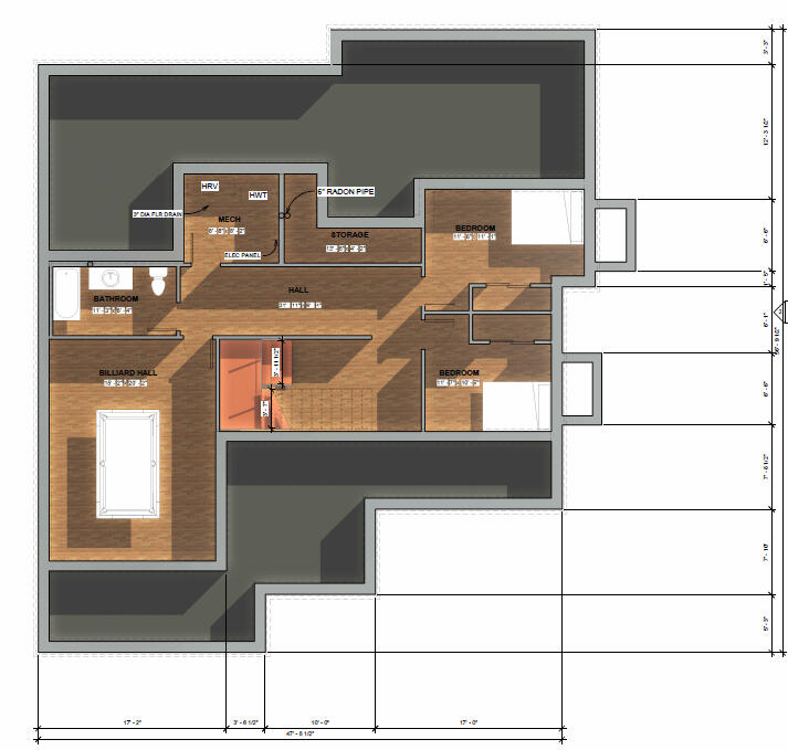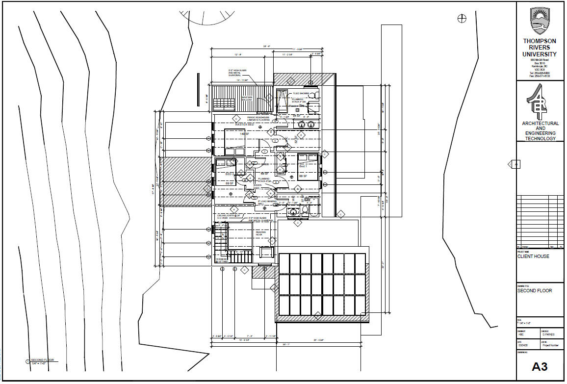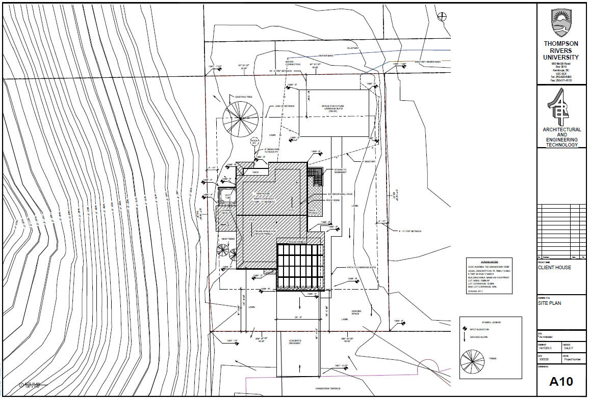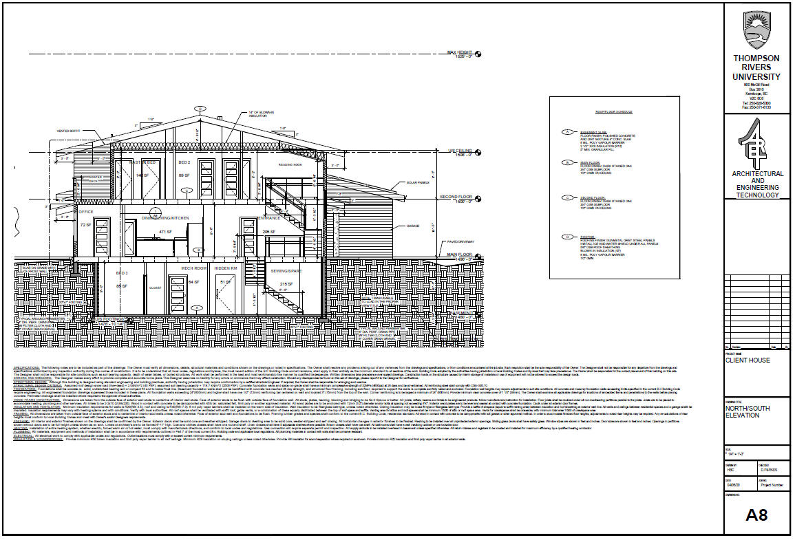These floorplans are from my first major project in university. It started as an existing lot in Kamloops, British Columbia with a building that was planned to be demolished. The whole class was instructed to design a home to fit our clients wants and needs, which was mainly focused around net-zero, and their children.