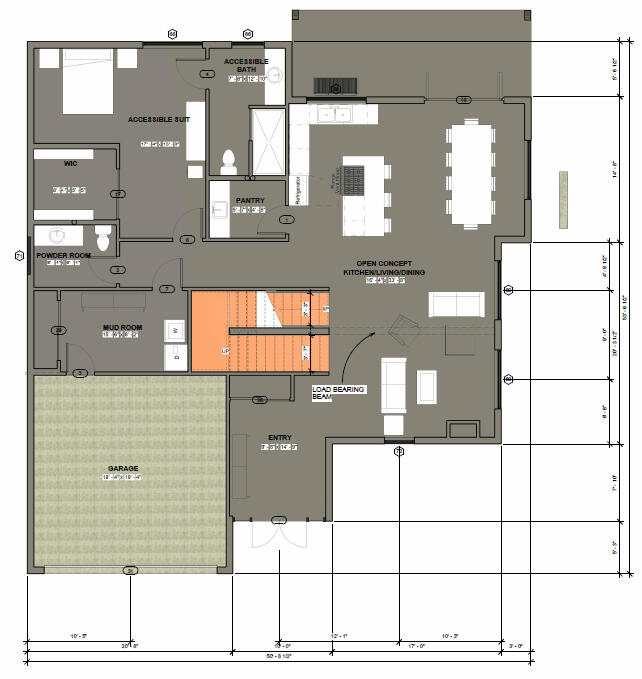The multi-generational home was another main project during university. This project had two main focuses: designing a home that fits the needs of three generations of a family, and trying out new features within Revit. The main floor has everything the eldest generation needs, including built-in design to allow full access with a wheelchair.