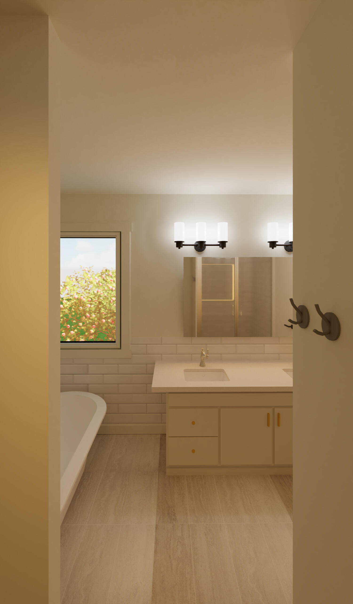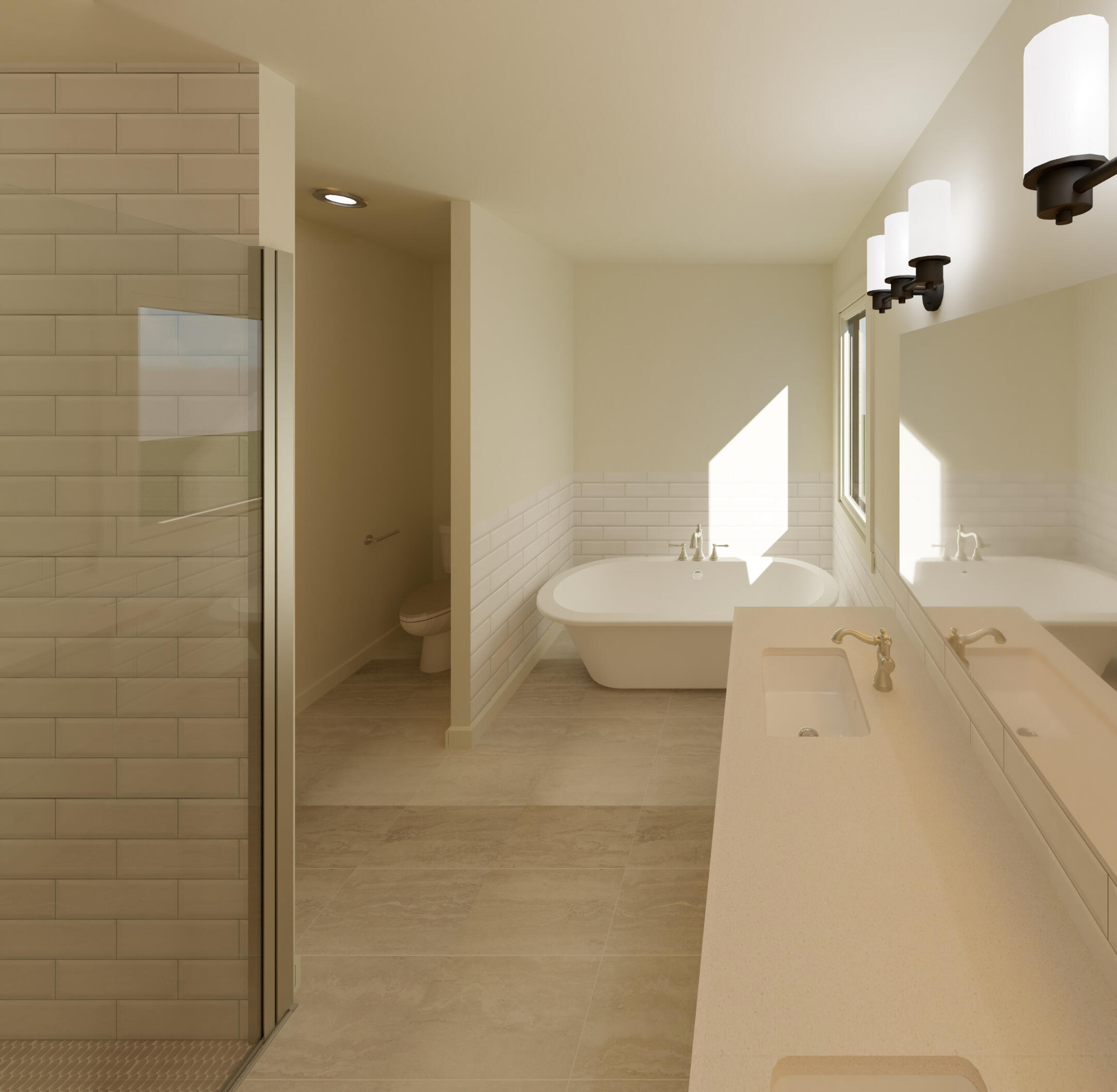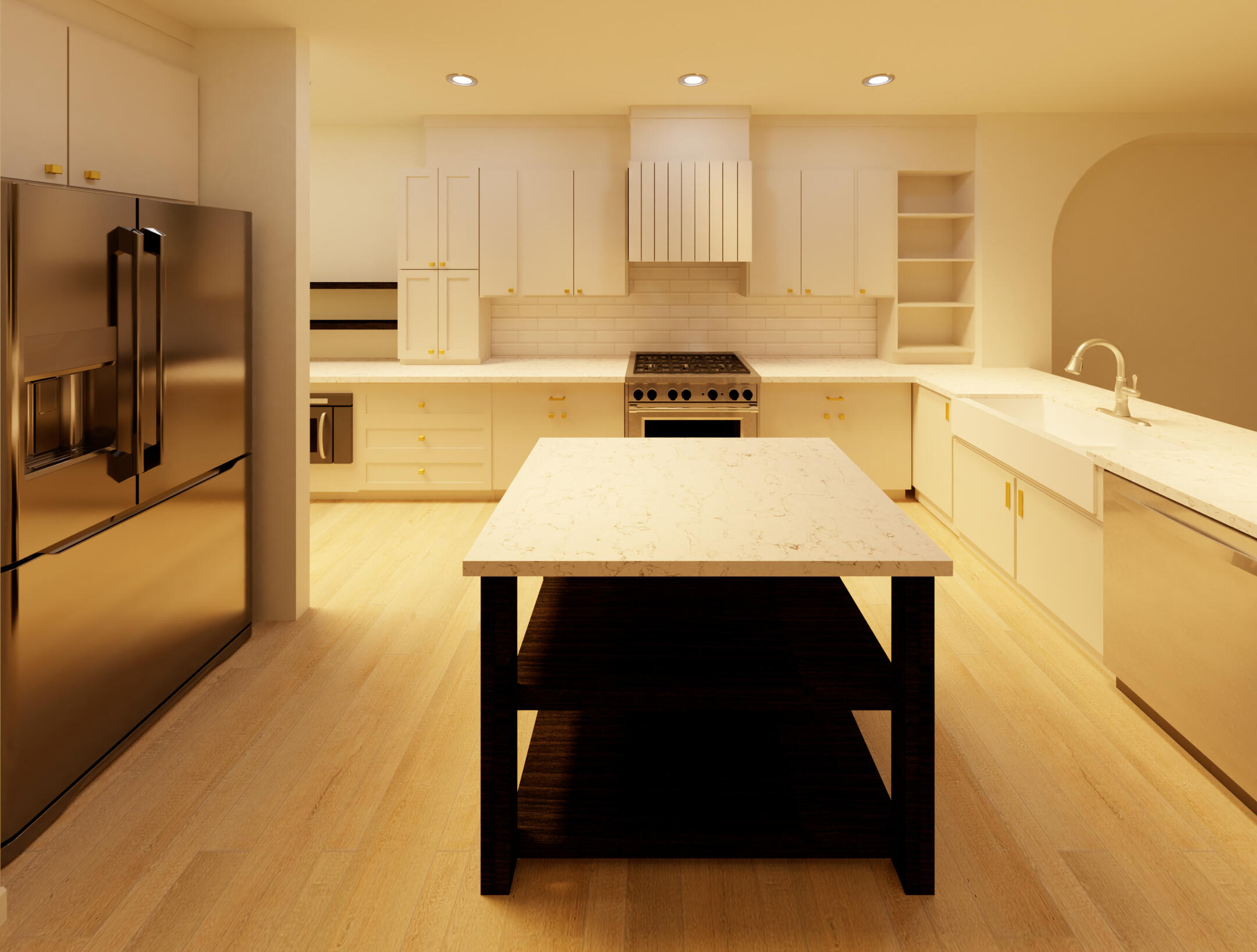 These renderings are some of my favorite work from outside of university. These are from a single family home I modeled in Revit, and include the kitchen, pantry, main stairs, and master bathroom.